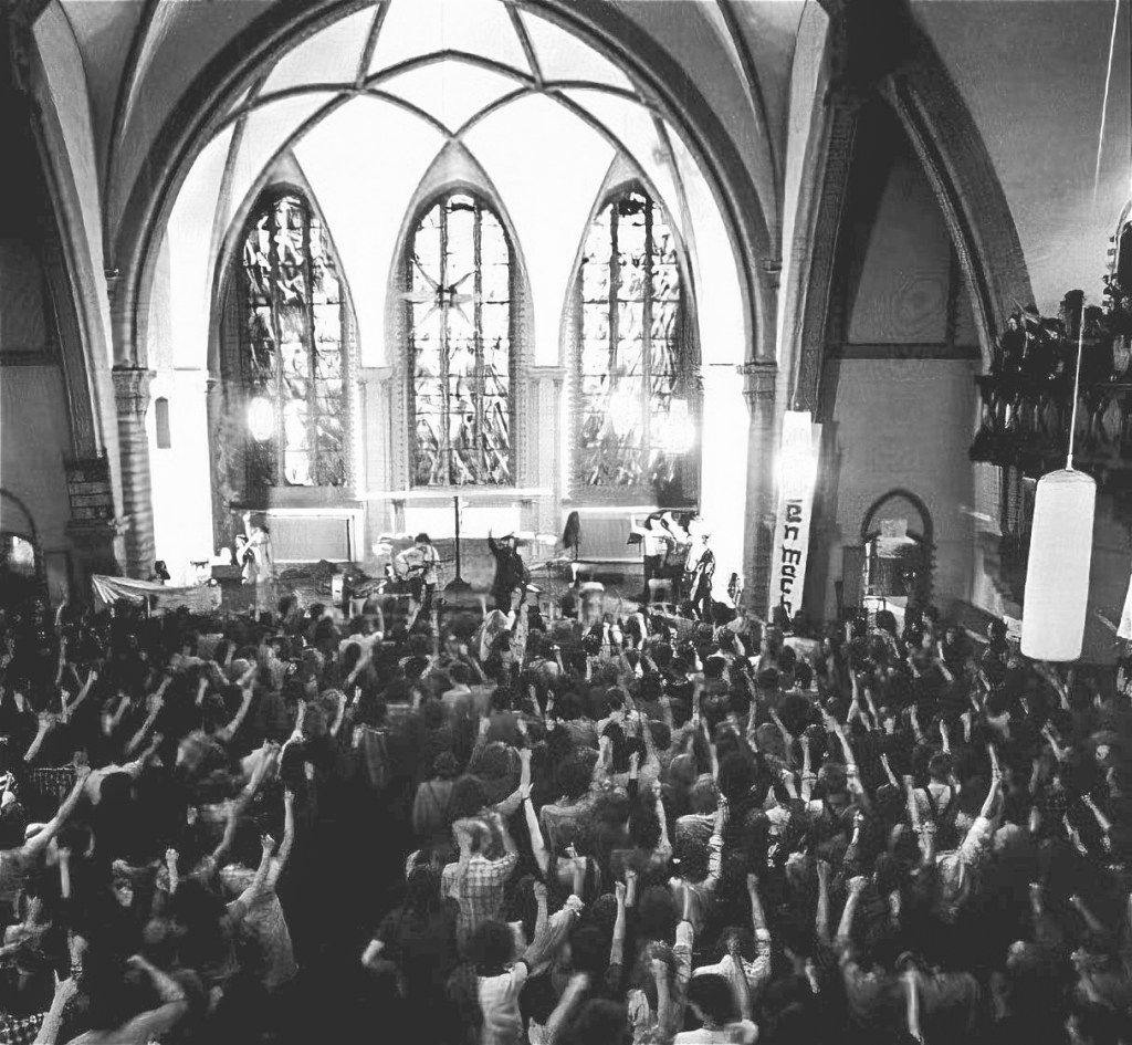 Foto: „Ostdeutsche Jugendliche füllen die Samariterkirche bei der Bluesmesse am 15. Juni 1980“, https://revolution89.de/revolutionsorte/details?tx_news_pi1%5Baction%5D=detail&tx_news_pi1%5Bcontroller%5D=News&tx_news_pi1%5Bnews%5D=505&cHash=6e9d1a6cb2f413f93e2d678741851799
