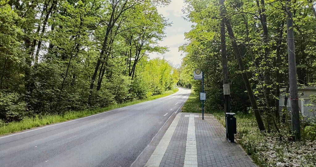 This is what the road to the Kunersdorf camp Looks like. The Trip from Potsdam takes between 3hrs. and 4hrs. When you arrive at the nearest bus Station you habe to walk around 20 minutes to reach the camp. The last bus to leave the area leaves at 6pm.